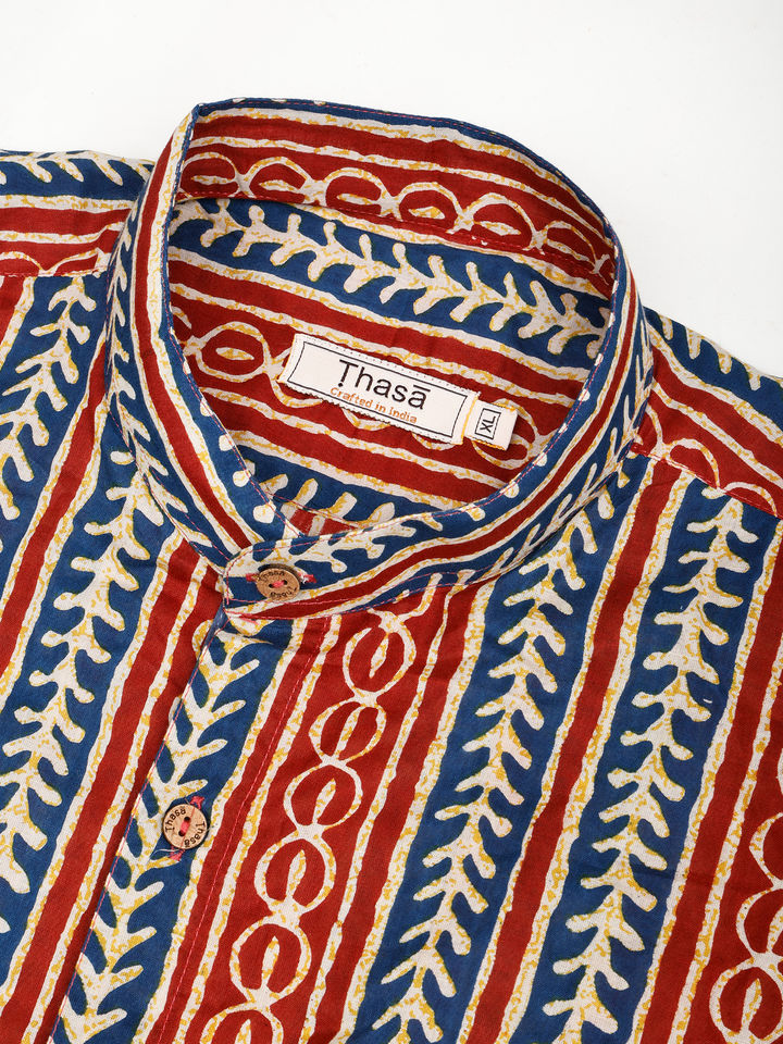 At Thasa, we redefine the art of block printing, merging the richness of Indian heritage with contemporary design. This shirt is not just a garment; it's a testament to our commitment to uniqueness and striking aesthetics. Crafted with care and precision, our versatile designs showcase a perfect harmony of tradition and modern flair. Elevate your wardrobe with Thasa's Block Print Shirt – where every thread tells a story of cultural richness and timeless elegance. Welcome to a world where tradition meets modernity in every stitch.